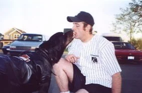 Balin is doing great and is making progress everyday. I just love him and he went on his first camping trip last weekend to Anderson Island.......ferry ride, tent, campfire, kids, adults and everything that goes with. The company softball team fell in love with him too and he immediately became the mascot. If you get the photo it's a picture of a co-worker/team member feeding Balin a Milkbone by mouth. Something I started when I was demonstrating how gentle he was and then Brian decided to try it for himself.