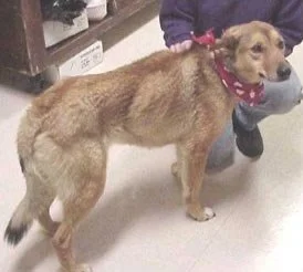 Here is what the shelter staff and volunteers said about her." This is the nicest, sweetest dog; she is literally falling apart at the shelter from stress, and sadness. She has lost a lot of weight and is all ribs and is very depressed. She cannot cope with living at the shelter and has to leave. Mickey is a 4-year-old, female, 45-pound, German Shepherd mixed breed. She is petite and has a delicate and graceful frame. Her small, sweet, soft face is captivating. She is simply delightful, with an affectionate, quiet, mellow personality. She loves to be cuddled and petted. She is good with kids and other dogs at the shelter. The vets have checked Mickey and say she is simply not eating because she is sad. Mickey is very bright and knows basic commands like sit, stay and come. She adores walks. Volunteers love to share time with this dog and always go to get her first. This girl just a sweet heart and has captured the hearts of volunteers and staff at the shelter."